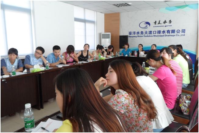 2013年7月26日上午,重庆渝州义工服务中心工作人员应邀来到重庆市大渡口排水有限公司,开展与企业志愿者分享志愿服务与志愿精神活动。此次分享以志愿服务和社区活动营造为核心,渝州义工负责人黄伟老师分享志愿服务、志愿精神以及志愿者的权益和义务等内容,公众河流负责人余剑锋老师分享社区环保活动的营造。夏日炎炎,丝毫没有挫伤学员们学习的斗志,培训的整个过程讲师热情洋溢的分享着,学员认真的聆听着、思考着。