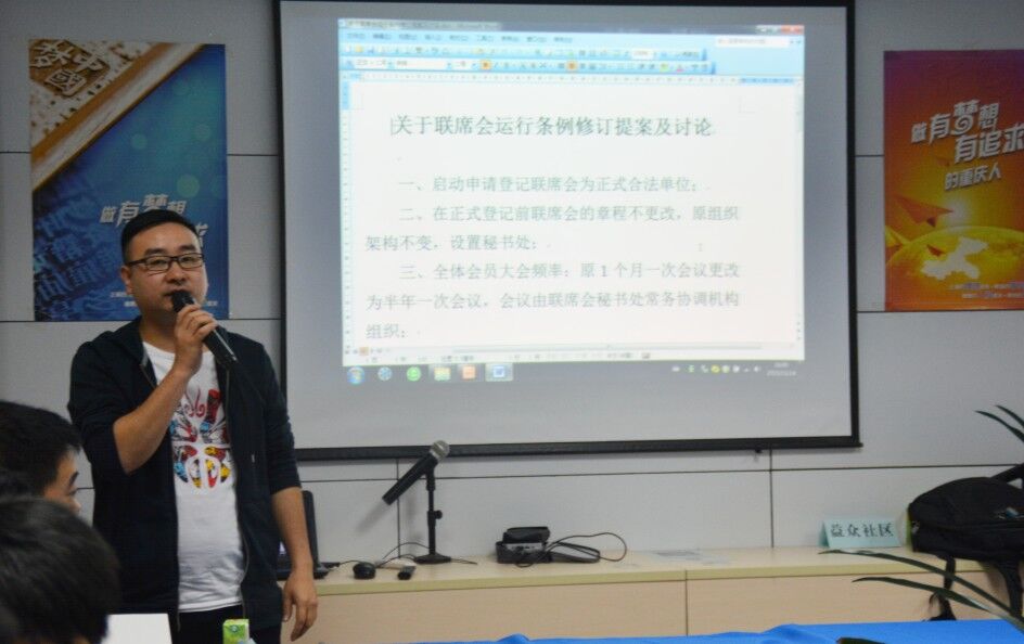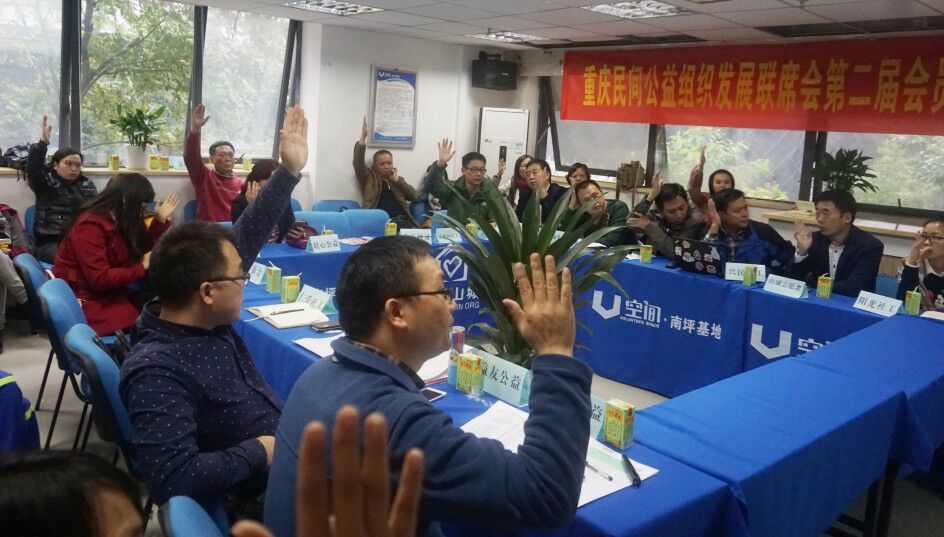 2015年11月14日下午,重庆民间公益组织发展联席会第二届会员大会在V空间·南坪基地召开。此次会议共有28家重庆本土社会组织代表出席。