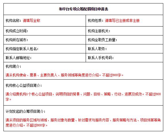五、附件:《和平台专项众筹配捐项目申请表》