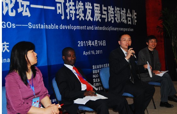 论坛以可持续发展与跨领域合作为主题,交流探讨了政府、企业、民间组织的跨领域合作经验,以及民间组织在汶川大地震救援和灾后重建中做出的贡献。来自加纳国家议会办公室主任Amu Ephraim先生、菲律宾华裔青年联合会的执行主任Gonzales Stella Go女士,和来自重庆本土的渝州义工服务中心主任黄伟先生、重庆青年志愿者协会副秘书长齐芳先,给大家带来了各自精彩的经验分享,同时与参会来宾们进行了热烈的互动。