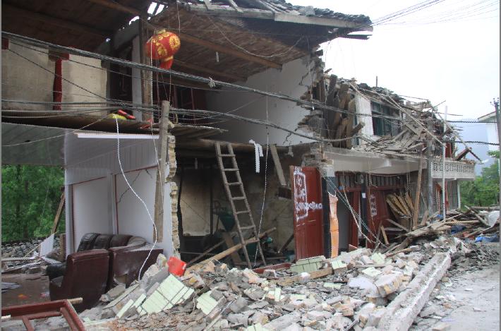 4.地震中受损的房屋。