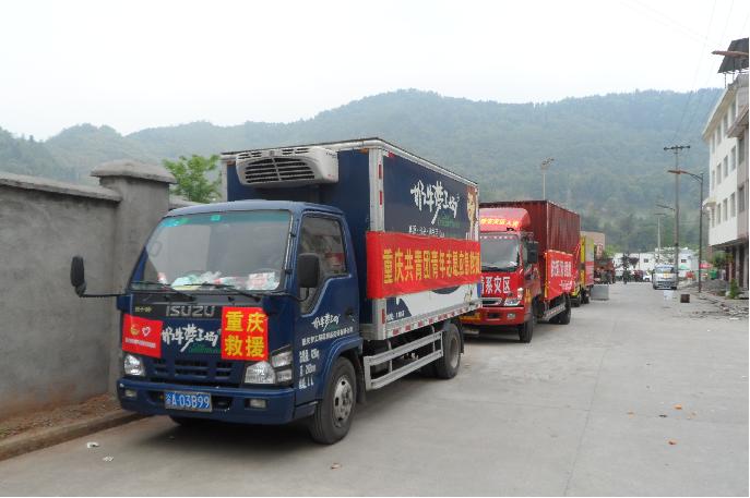 2.重庆联合救援物资车队,满载救灾物资,为灾区民众送去希望和温暖。