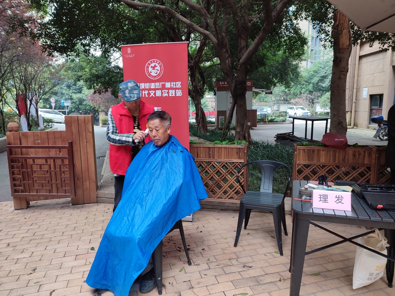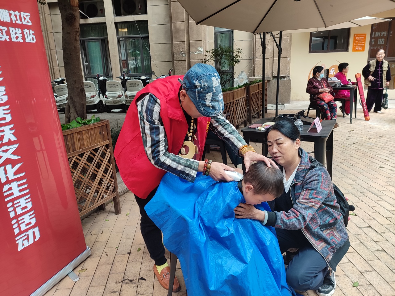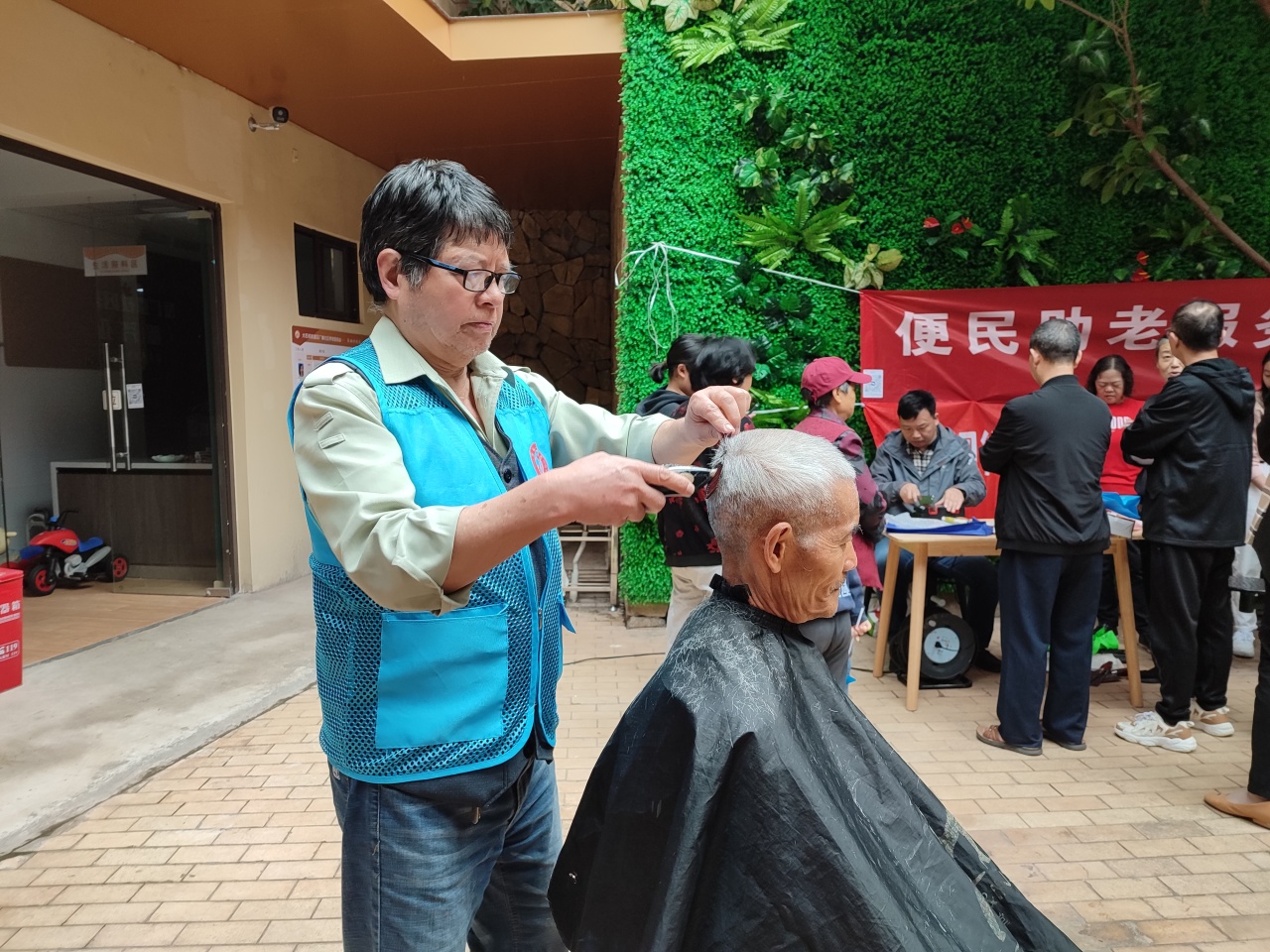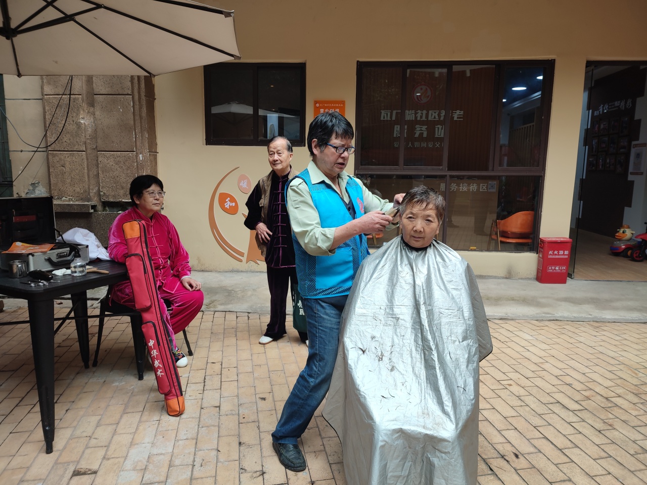 志愿者们根据居民的要求,一会用电推子“嗡嗡嗡”、一会用剪刀“咔嚓、咔嚓”。一边和老人们聊天,一边用娴熟精湛的理发手艺,为老人们理发,理完后又细心地掸去落在老人脖颈上、衣服上的碎发,不一会就修剪出一个个适合他们的发型。