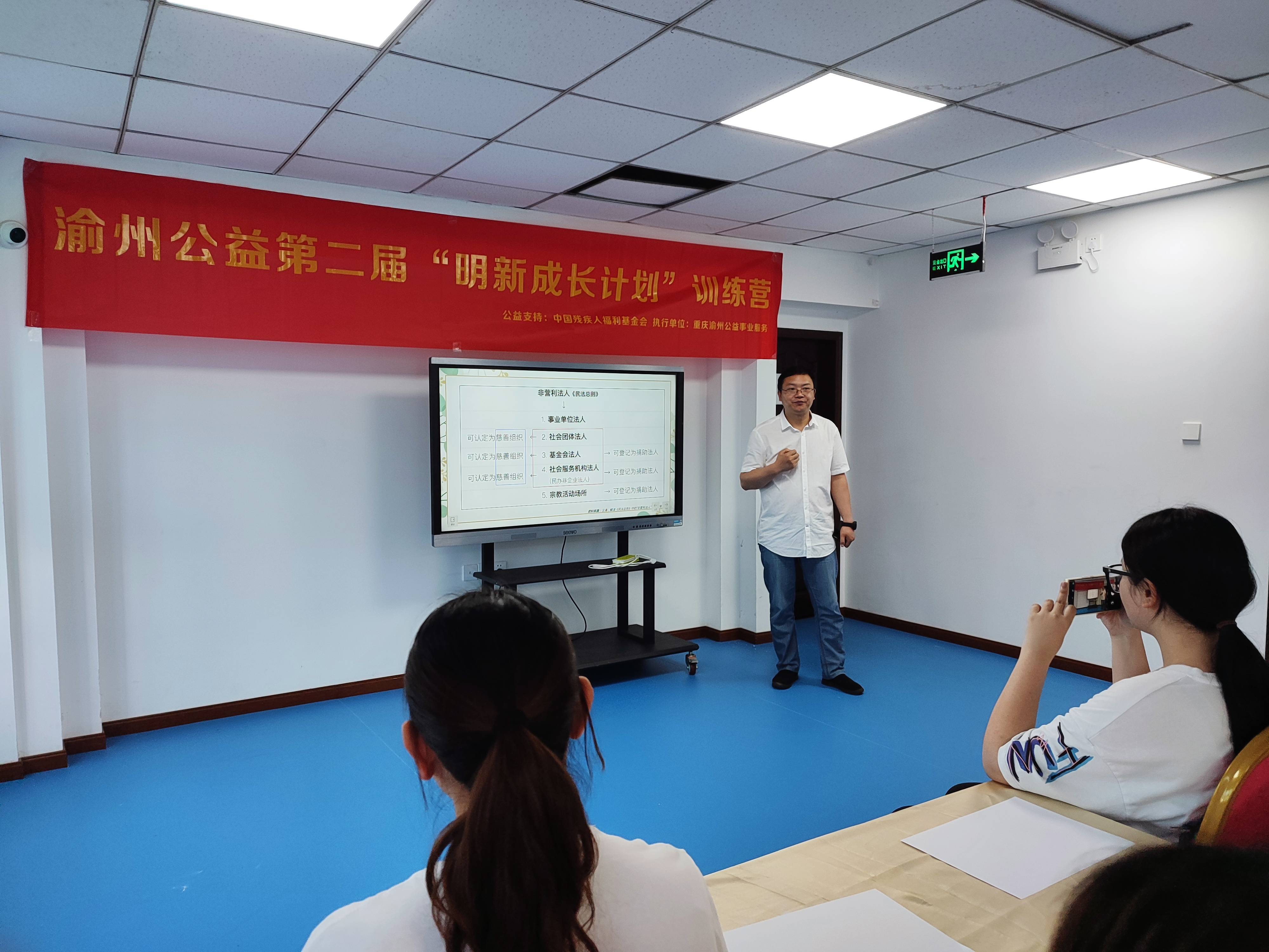 为培育一批新型公益人才,为助残社会公益组织注入新活力,推动助残社会公益组织行业发展创新助残组织走向项目规范化、管理制度化、项目执行专业化、社工人员职业化。2022年5月13日至5月16日,重庆渝州公益事业服务中心主任黄伟,重庆市渝中区慧灵职业康复训练中心主任杨姗,重庆天爱特教康复中心主任邹萍于重庆市渝北梨园宾馆,开展为期4天的能力建设培训讲座。