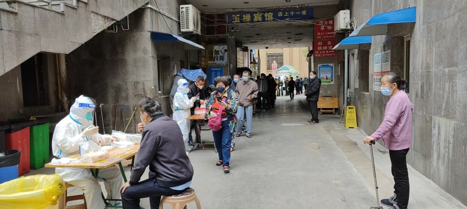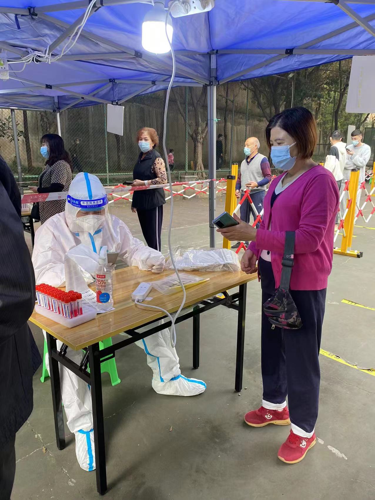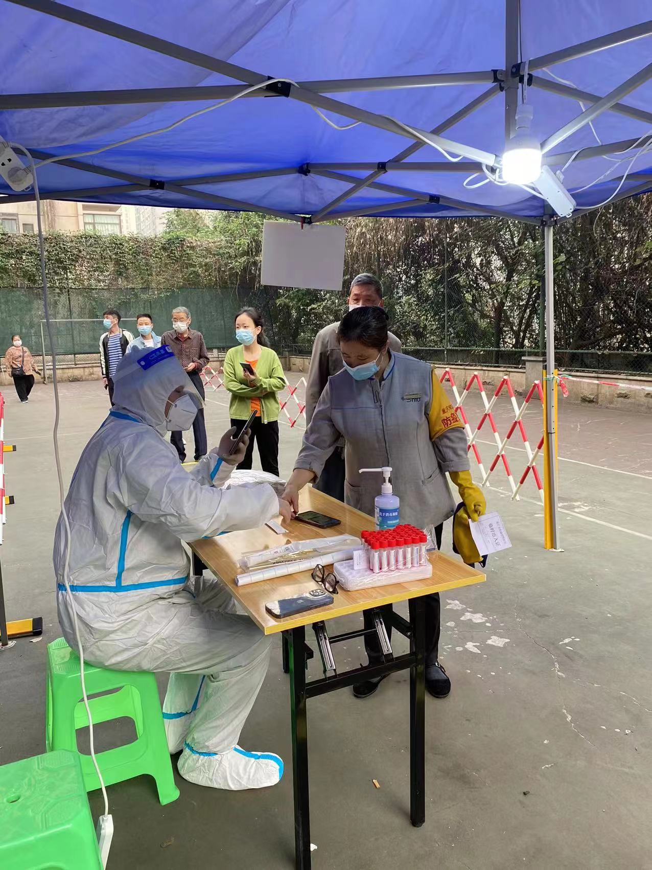 正在开展核酸检测服务的志愿者们