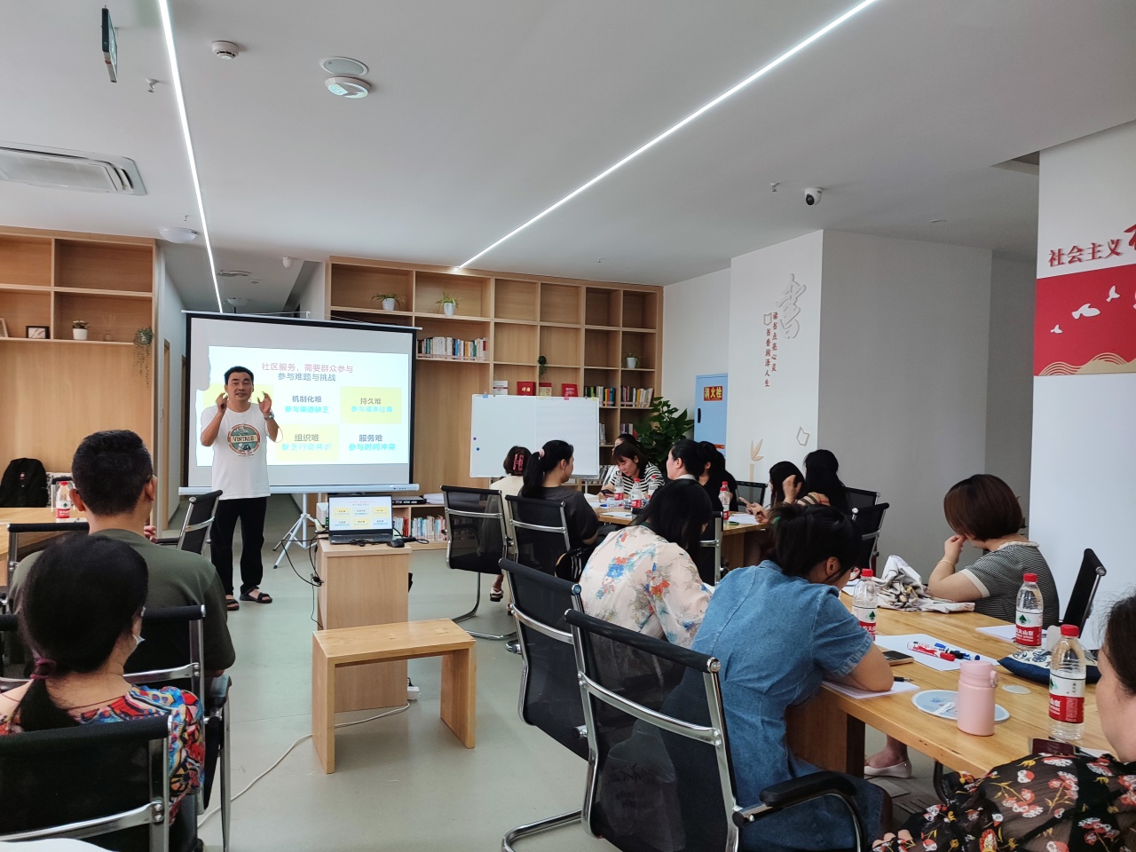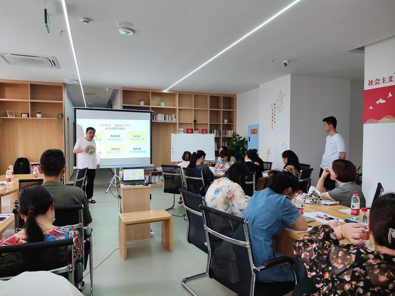 近日,重庆渝州公益事业服务中心在重庆市江北区华新街华联社区居委会,为华新街街道各社区书记、主任及骨干人员开展了社工服务项目能力提升培训,此次培训共30人参加。